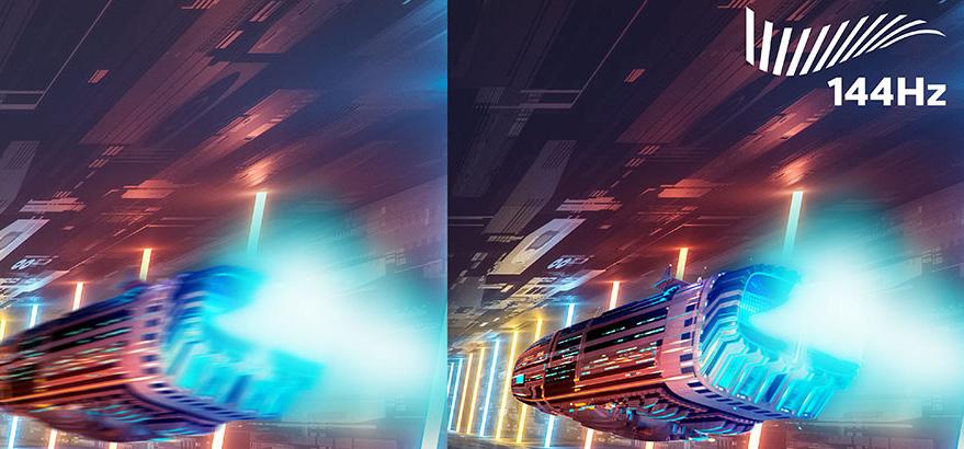 The main feature of the competitive AG274QZM is its MiniLED backlight with 576 individual dimming zones. By turning on the backlight on only a small portion of the panel, the monitor can reach up to 1200 nits brightness to display bright visual features such as sunlight, fire etc., while displaying deep, dark shadows at the same time. This high dynamic range increases the perceived contrast ratio immensely and provides a
