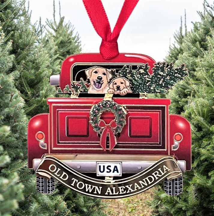 104 SOUTH UNION STREET, ALEXANDRIA, VA This adorable red pick-up truck ornament is one of many in our collection of beautifully handcrafted solid brass local ornaments, made in the USA, and featured in our Holiday Collection. Browse unique Virginia-made, hand-painted wood ornaments depicting Old Town Alexandria's historic homes, plus custom OTX merchandise, kitchenware, toys, and locally sourced foods. You will find perfect gift ideas and stocking stuffers for everyone on your list! Shop in-store or online.