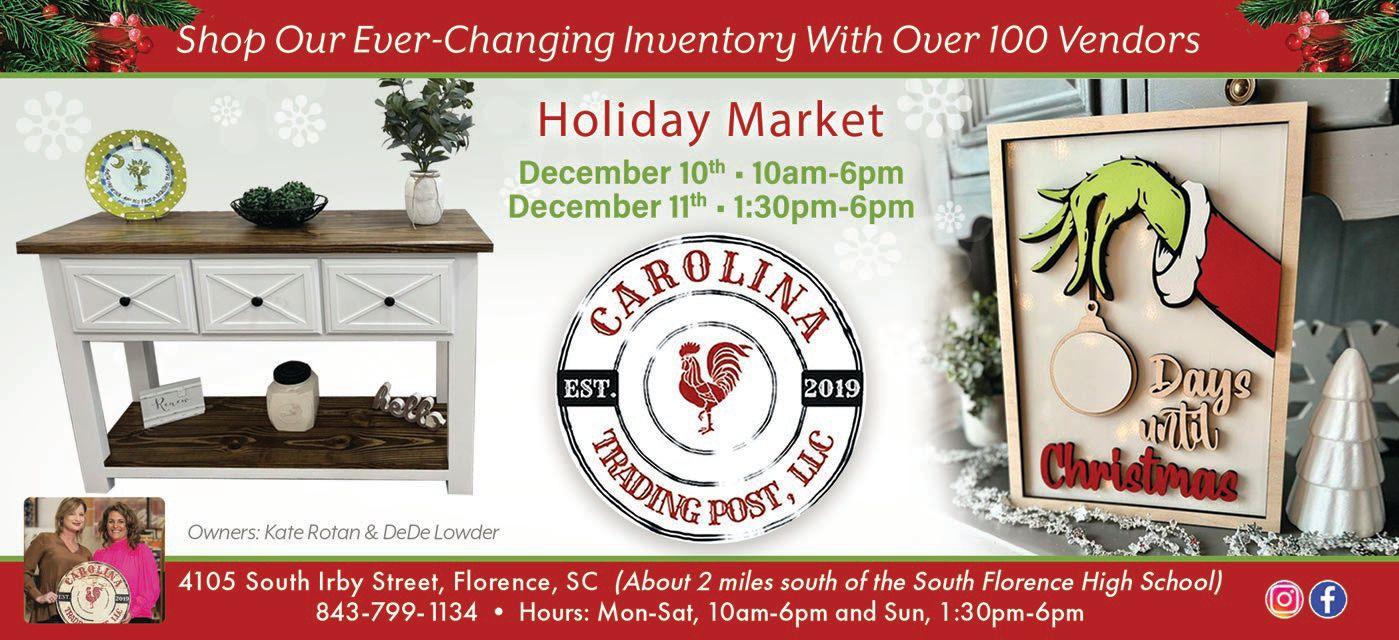 Holiday Market, Carolina Trading Post 10a Ornaments/Crafts, Moore Farms 1p
