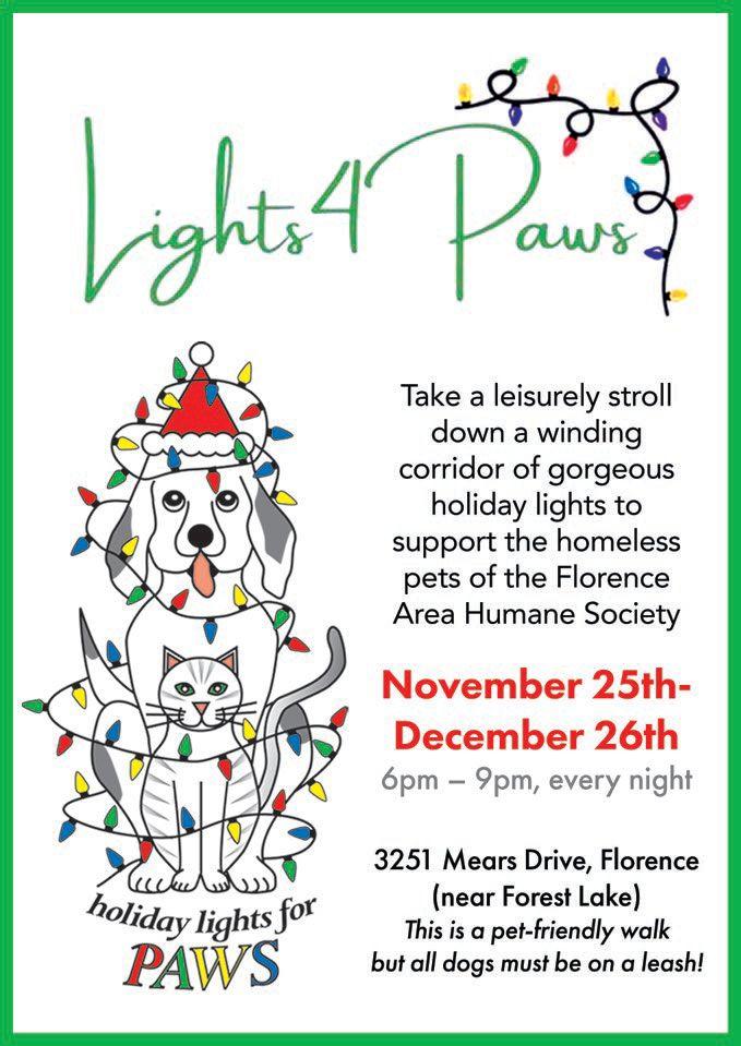 4 Paws 3215 Mears Dr, Florence 6p-9p until December 26th