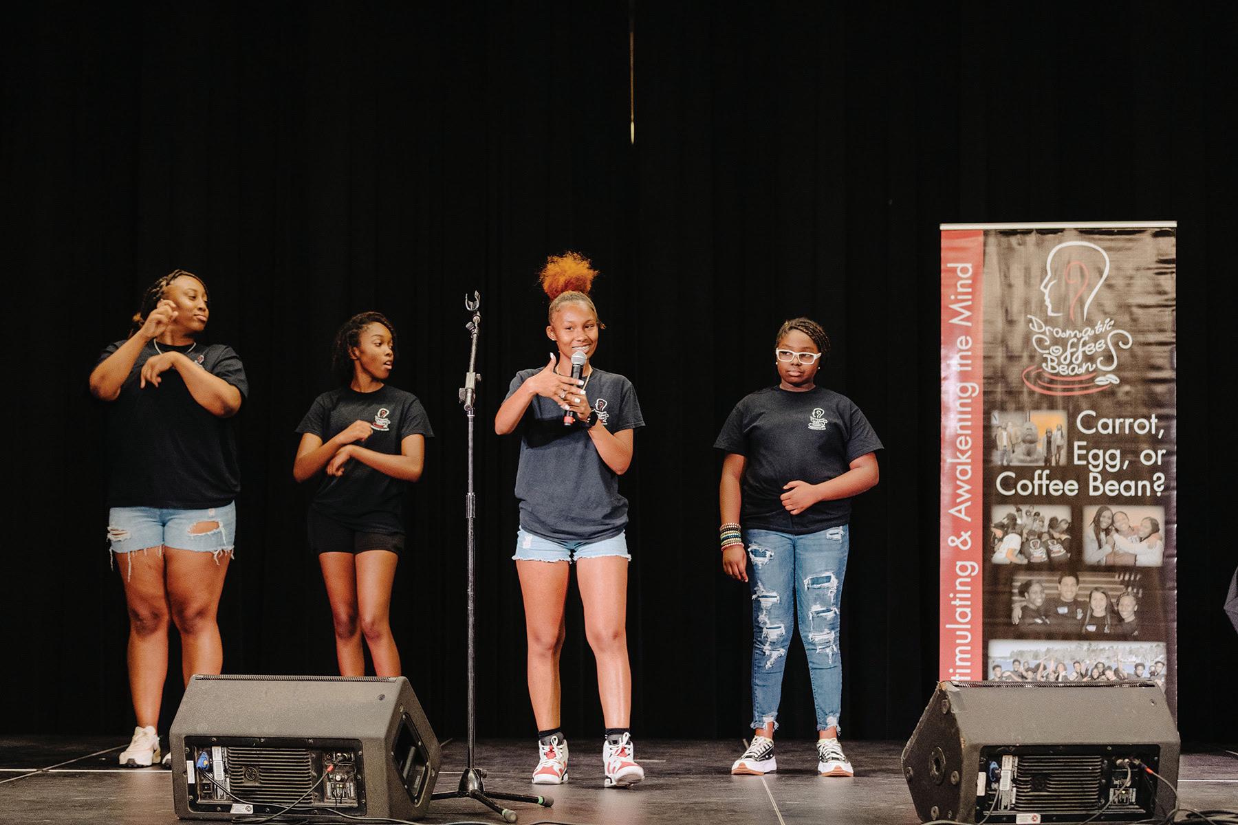 Have you ever heard the story about the egg, carrot, and coffee bean? It might just inspire you the same way that it inspired Carla Simon Angus to start the organization, Dramatic Coffee Beans, Inc, in 2011. The story illustrates how when people are put in tough situations or "hot water" they can either become soft and fall apart like the carrot does or hardened to the world as an egg does. Or, they can be like a coffee bean and completely change that "hot water" of life into a delicious cup of coffee. Dramatic Coffee Beans is a teen enrichment group like no other with the goal of equipping students to "be a coffee bean" and change the water. Utilizing improvisation, drama, and the arts, students in grades 6-12 learn how to tackle some of life's biggest challenges and navigate the temptations and pitfalls of growing up in society today. Founded by visionary leader Carla Simon Angus, who saw a need in her hometown of Lake City and knew that a youth development group could make a difference. The group covers topics ranging from financial literacy to physical fitness to mental health. Members bring real-world scenarios to talk through and frequently make skits to work through the everyday challenges that are encountered. "DCB has provided me with a safe space to express myself and introduced me to many new opportunities," DCB member Zyniah McClam says of her experience with the organization. "The teen advisors and Mrs. Carla always do their best to make the meetings fun and entertaining by bringing in speakers to speak on different struggles teens go through."
