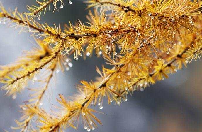 Zacht dwarrelen de lariksnaalden naar beneden, en dat in enorme hoeveelheden! De lariks is namelijk de enige inheemse naaldboom die in één keer al zijn naalden verliest. Andere naaldbomen doen dat ook, maar niet allemaal tegelijk. Zij verliezen hun naalden beetje bij beetje, zodat ze ongeveer elke zeven jaar een volledig nieuw ‘naaldenkleed’ hebben.