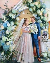 Melissa Munger is a live wedding painter whose passion for capturing love on canvas remains as strong today as it was at her first event. Working in a romantic, impressionistic style grounded in traditional portrait techniques, she focuses on the bride and groom, capturing true likeness, movement, and emotion in real time. A self-described introvert, Melissa’s quiet presence allows her to notice the subtle details that make each couple unique. With decades of portrait experience, she creates timeless works meant to be cherished for generations. This year marks a decade of live painting, and more than 500 weddings captured on canvas.
