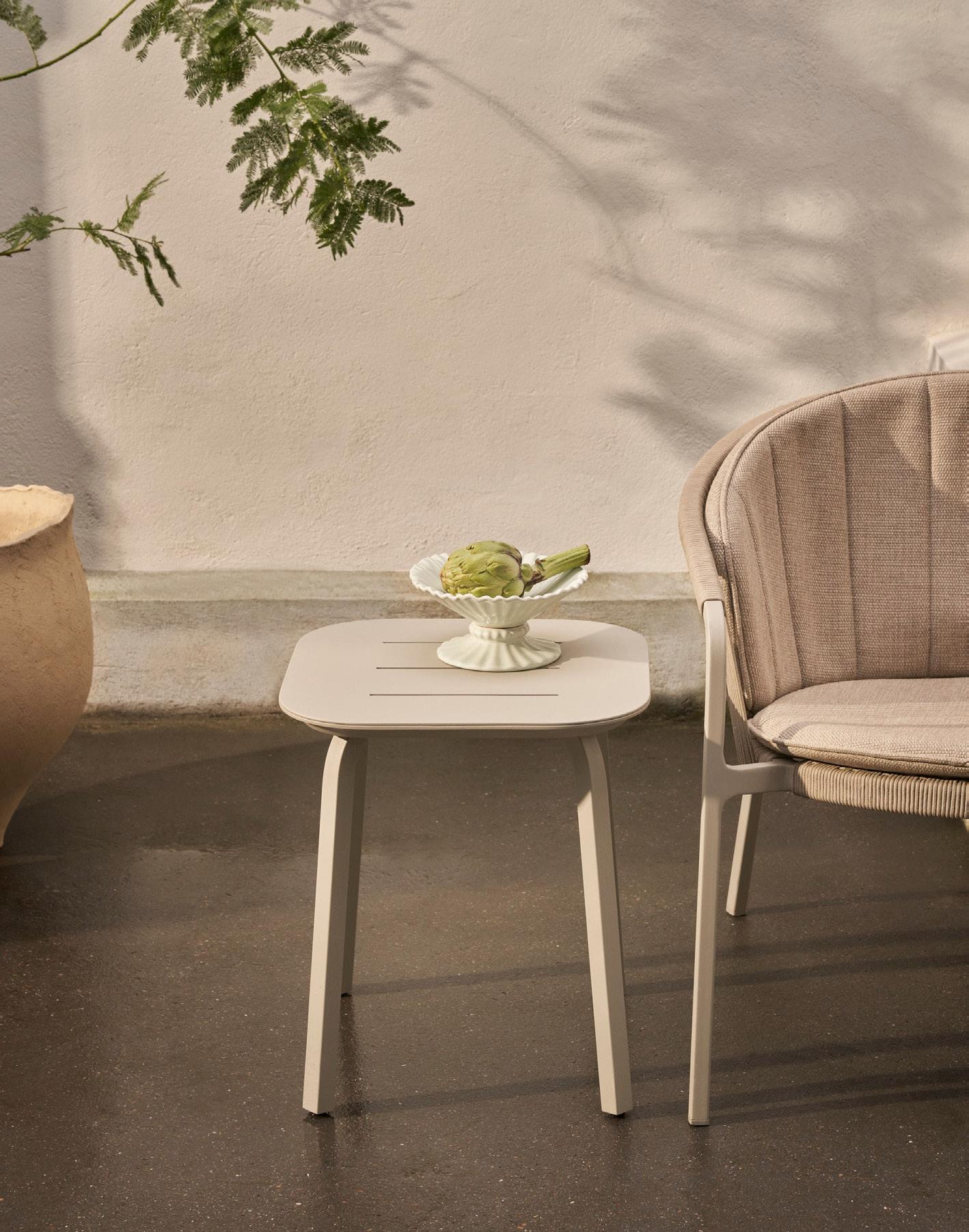 A side table has been added to the Vipp Lagrasse outdoor collection. Featuring a simple, high-strength powder-coated aluminium frame which mirrors the airy expression and design ethos of the Lagrasse collection.