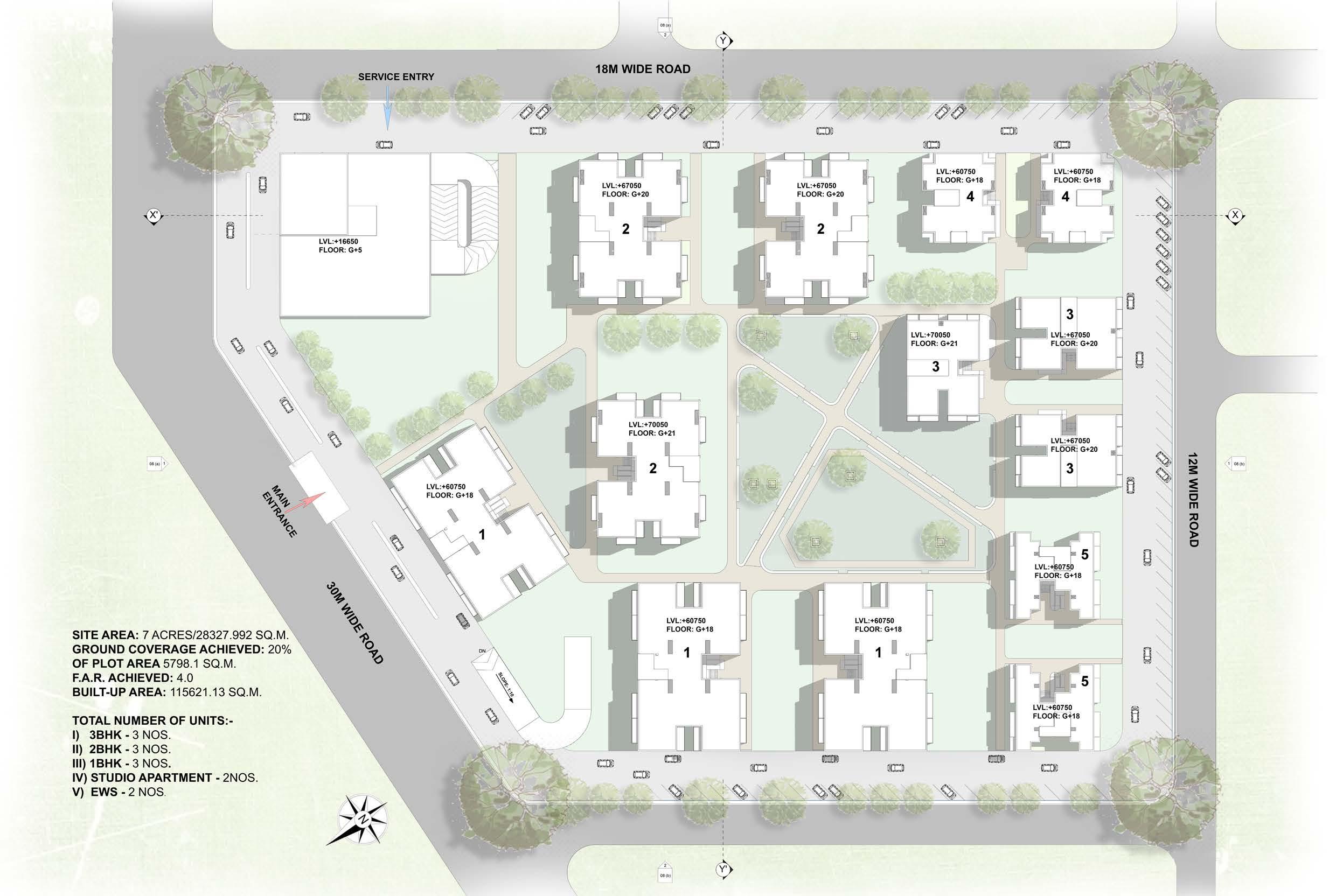 GROUND COVERAGE ACHIEVED: 19.68% OF PLOT AREA= 9560 SQ.M.