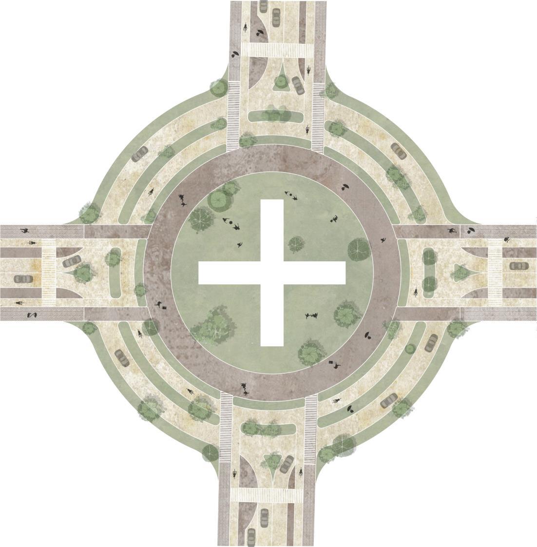 Road network is designed in a way to make it accessible for pedestrians and it creates connections to the built all around the site. While each street has dedicated bicycle lane and intersection is also designed to prioritize pedestrian and cyclist activities. Pedestrian access