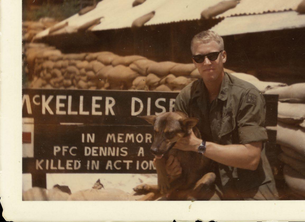 Top: Lt. Rasmussen at the McKeller Dispensary at Pleiku with “Keats,” a dog he and his men adopted, August 1967 (Courtesy of William Rasmussen).