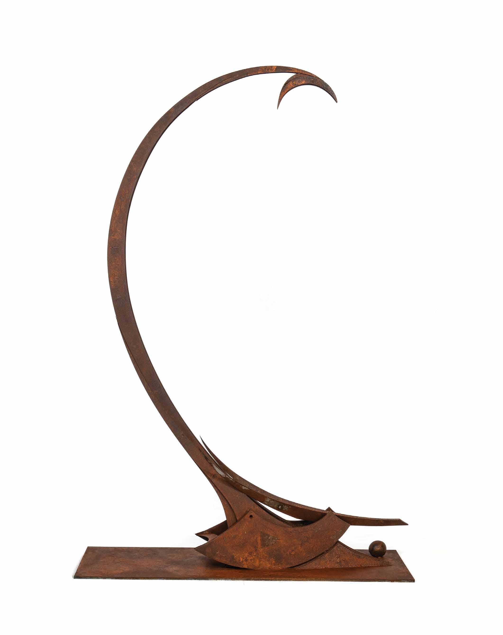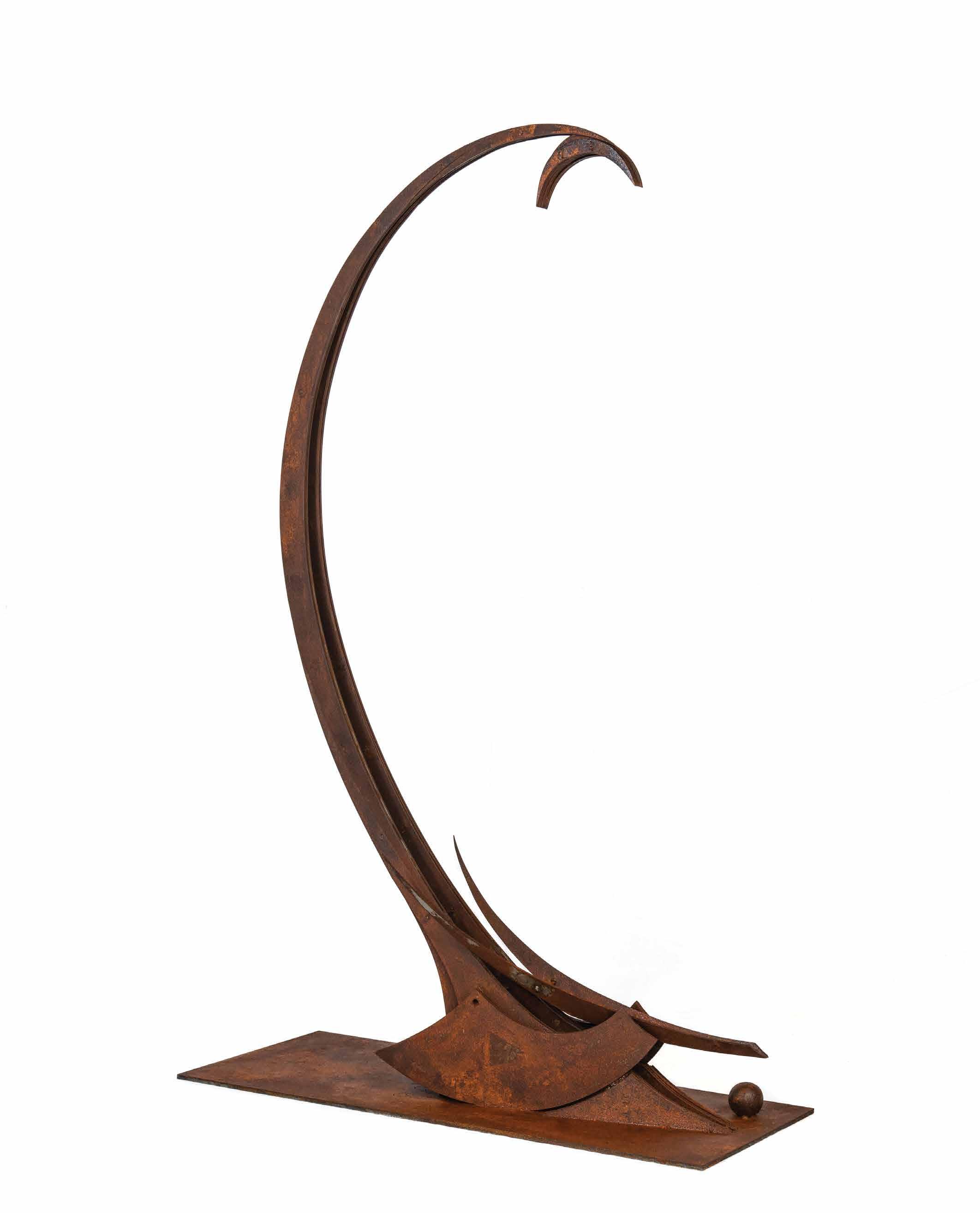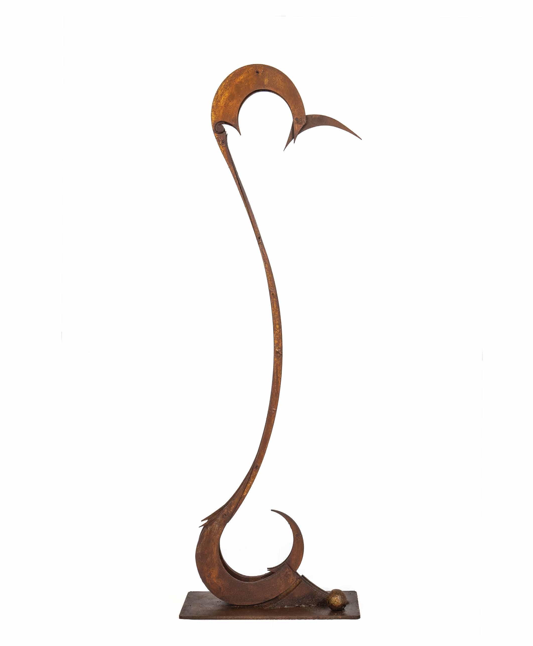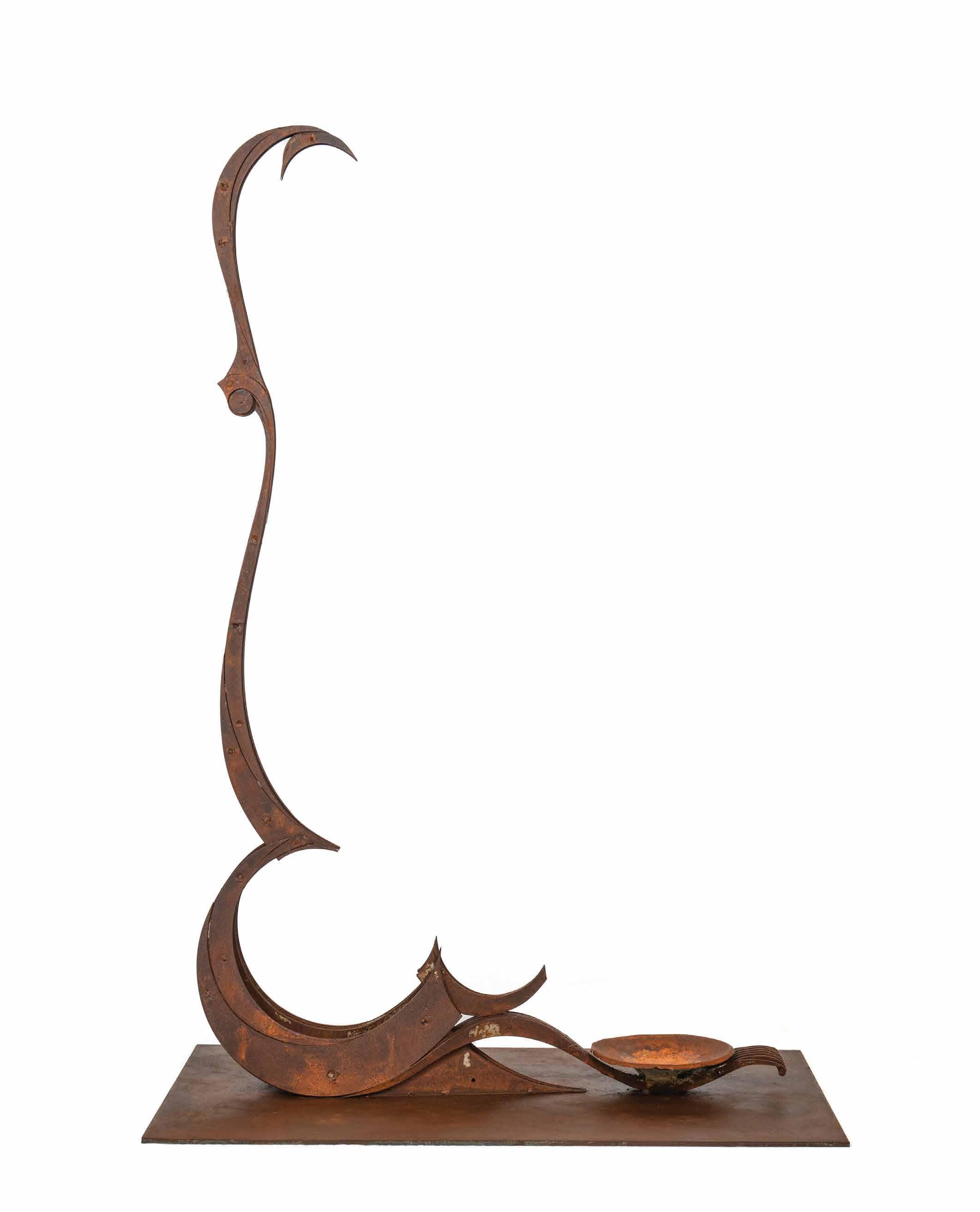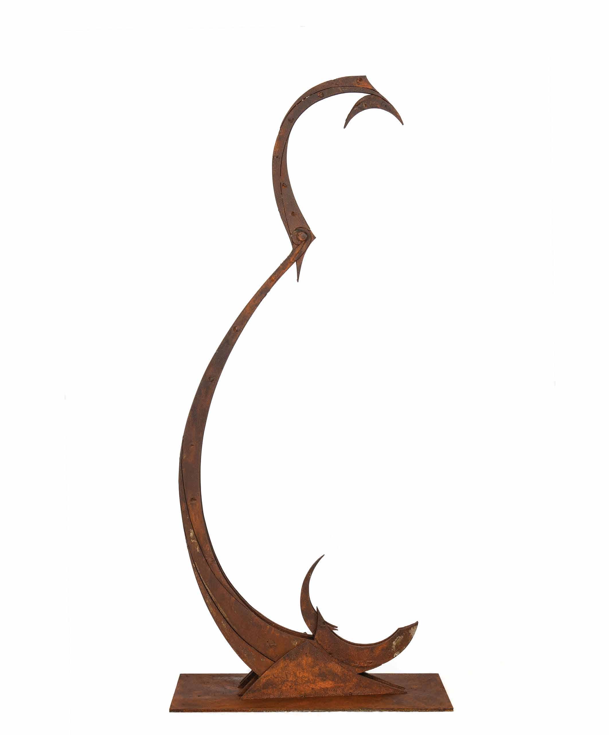 scultura in acciaio corten con led altezza m 5,5, base m 4,10 x 1,20
