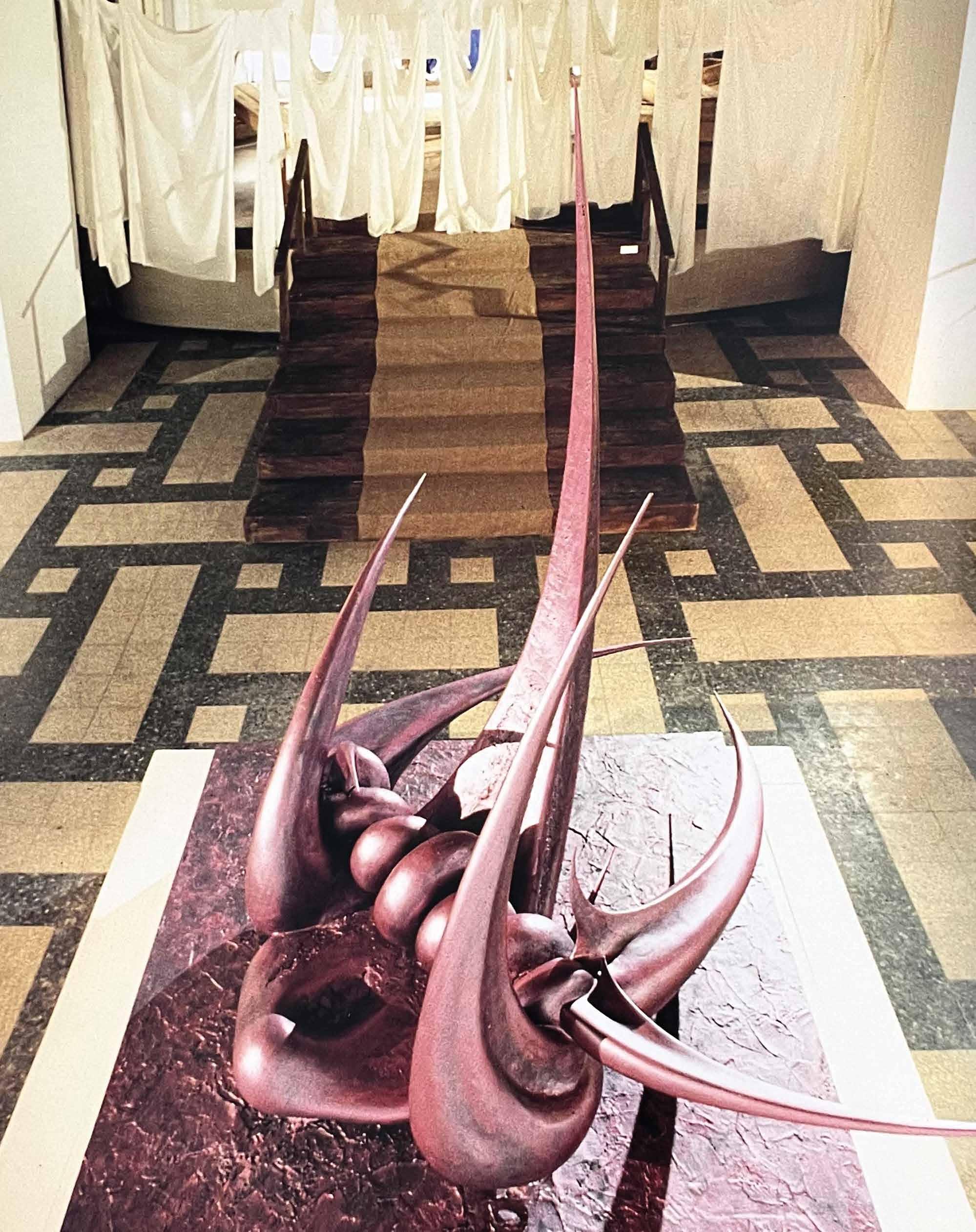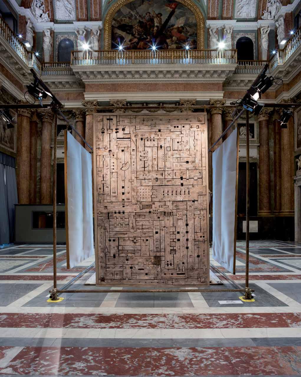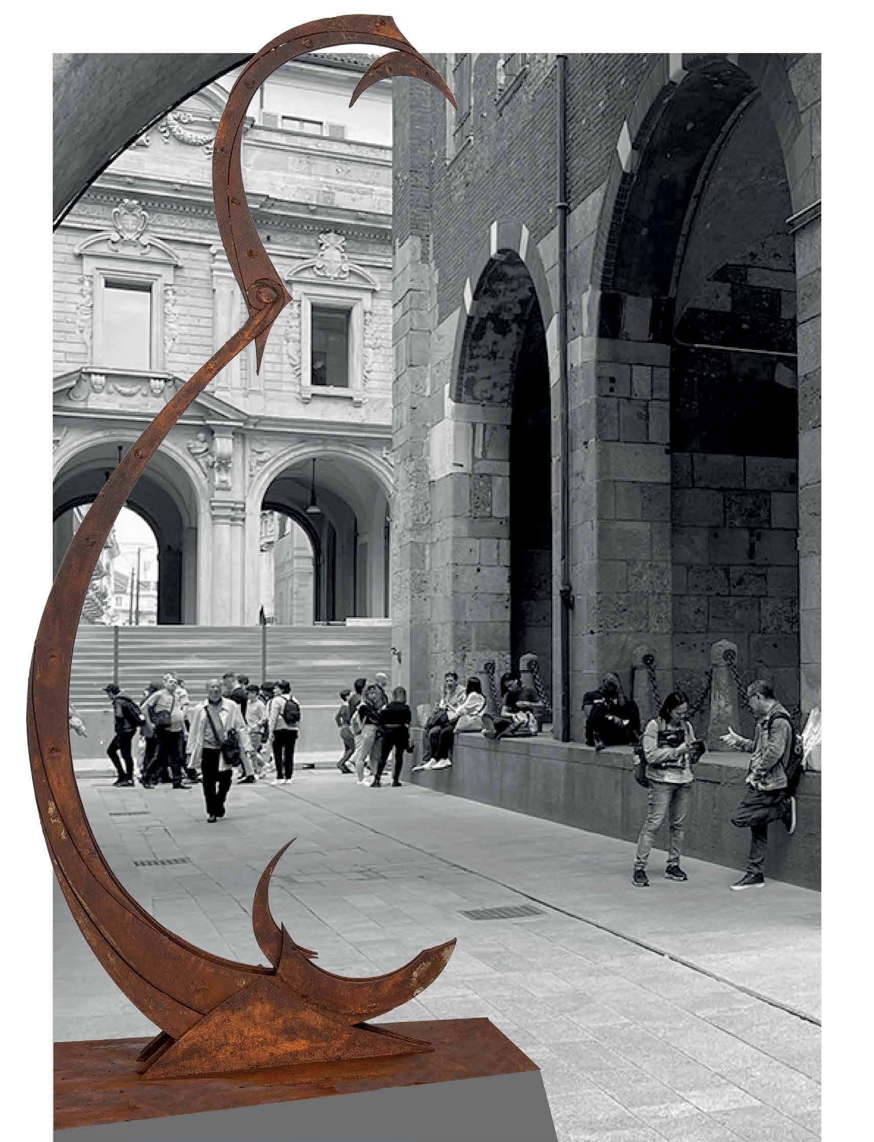 La mostra di fatto si presenta come un gigantesco work in progress, una sorta di medievale speculum mundi che, a partire dal nucleo iniziale delle opere realizzate tra il 2016 e il 2019 per proseguire con la performance del 2022, riflette, passo dopo passo, l’ineluttabile cammino dell’Umanità verso l’autodistruzione. Di questo parlano le 10 grandi sculture progettate quest’anno come temporaneo arredo degli spazi urbani di Milano, il cui titolo complessivo, Esprimi un desiderio… (non l’ultimo) è subito contraddetto dal titolo dell’opera finale, L’ultimo spenga la luce, che non è evidentemente solo un richiamo alla mostra presentata a Genova nel 2016.