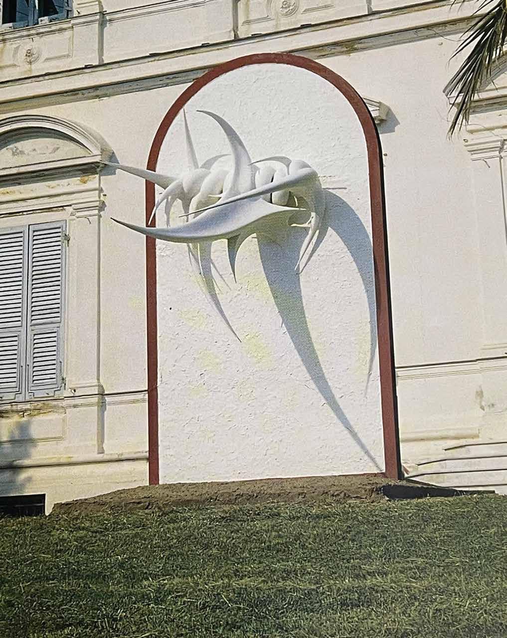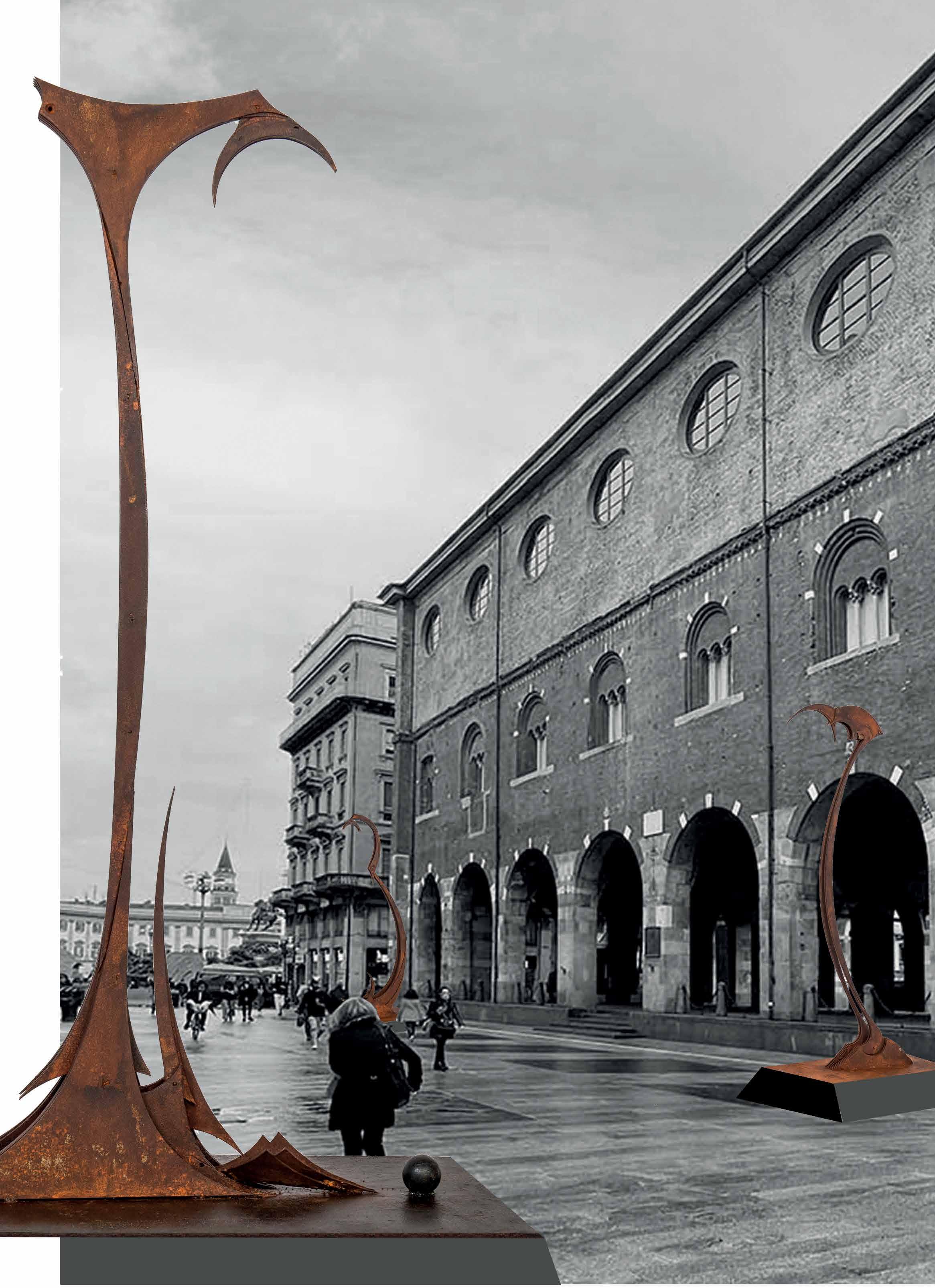 Secondo una modalità che gli è particolarmente congeniale, l’artista tende a dissimulare la disperazione del significato facendo ricorso ad un significante che raramente lo esplicita, ma al contrario lo dissimula in forme accattivanti e per certi versi fuorvianti. Questo è tanto più vero per queste sculture che materializzano l’energia di una forma sottile e vibrante, quasi un disegno nello spazio che si avvale anche di effetti luminosi e di apparenti facilities per il pubblico, panchine e giochi d’acqua e proiezioni video in apparente continuità con il modello della città-spettacolo, nonostante le forme aguzze ed aggressive alludano ad una imprecisata minaccia e non manchino qua e là indizi rivelatori come la macelleria di Ouverte H24. Come è già accaduto per il gruppo scultoreo Ulisse e la nave cavallo collocato a Genova nel 2022 davanti al Teatro della Corte, queste forme ambigue rimandano a quella matrice umana primordiale e archetipica da sempre presente nel lavoro di Nazzaretto, l’uomo vittima e carnefice, e tendono ad allargare lo spazio dell’arte a quello della vita quotidiana, la città, in un dialogo dai risultati imprevedibili. È probabile che anche in questo caso all’iniziale “effetto sorpresa” subentri velocemente quell’assuefazione che consente all’uomo contemporaneo di sopravvivere ad ogni scenario per quanto terribile di violenza e di sopraffazione. Forse anche per questo a segnare l’ultima linea rossa tra la realtà e l’arte Nazzaretto pensa anche ad una collocazione virtuale di queste sculture nei luoghi più devastati del pianeta che compariranno in proiezioni video raccolte con l’aiuto di associazioni ed enti per lanciare così un’ultima sfida globale e un altro forse definitivo warning ad un mondo sempre più indifferente.
