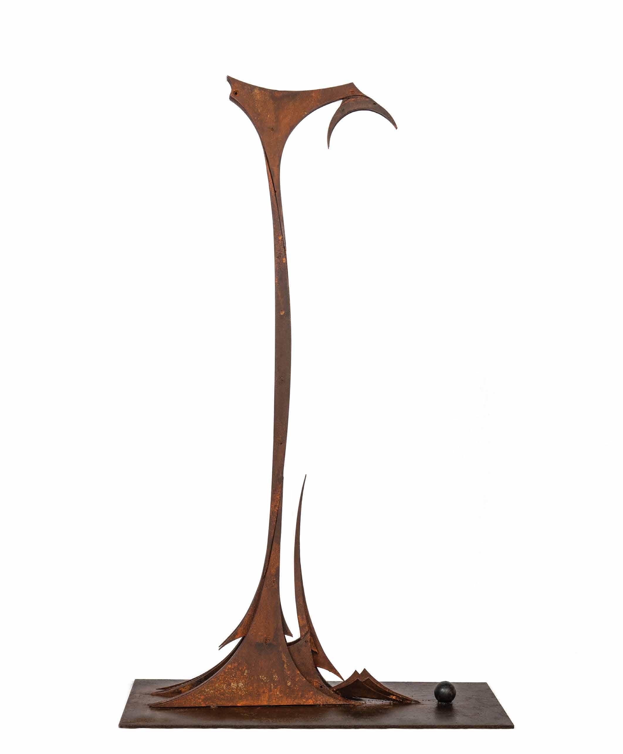 Lampione n.2 scultura in acciaio corten con led altezza m 6,5, base m 2,5 x 1,5
