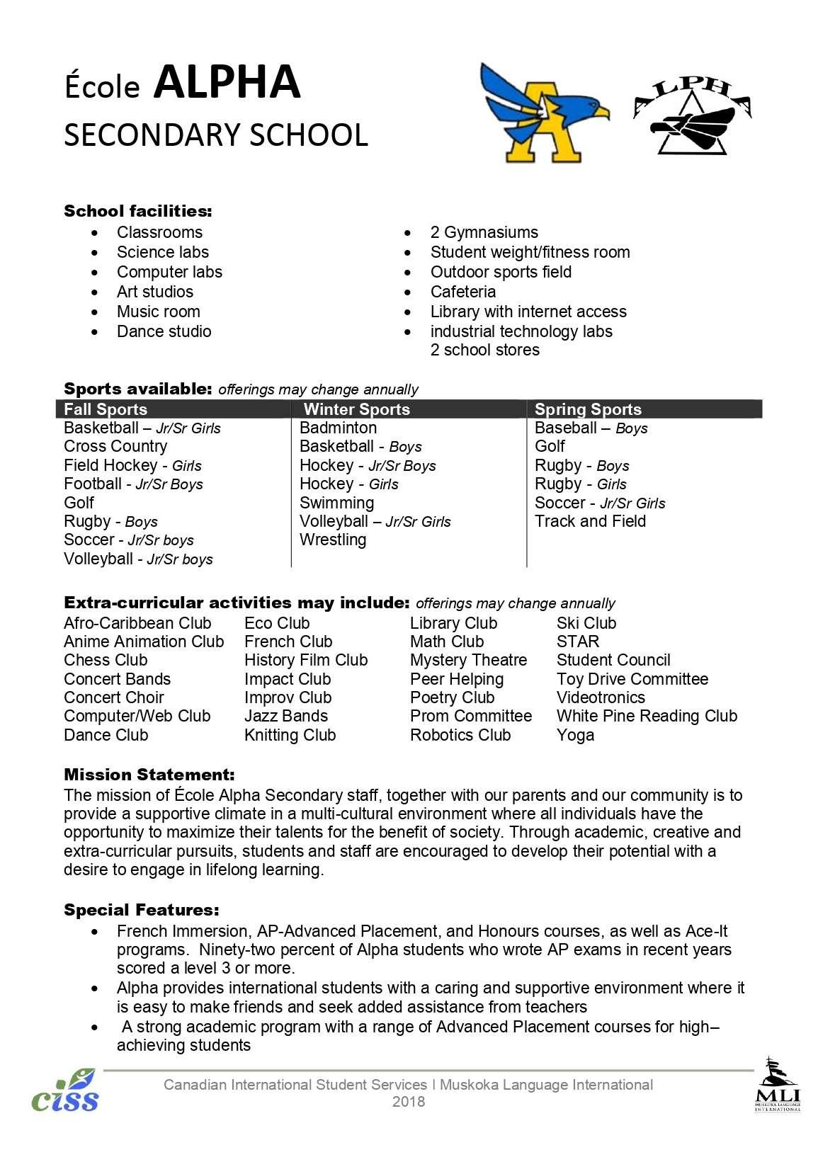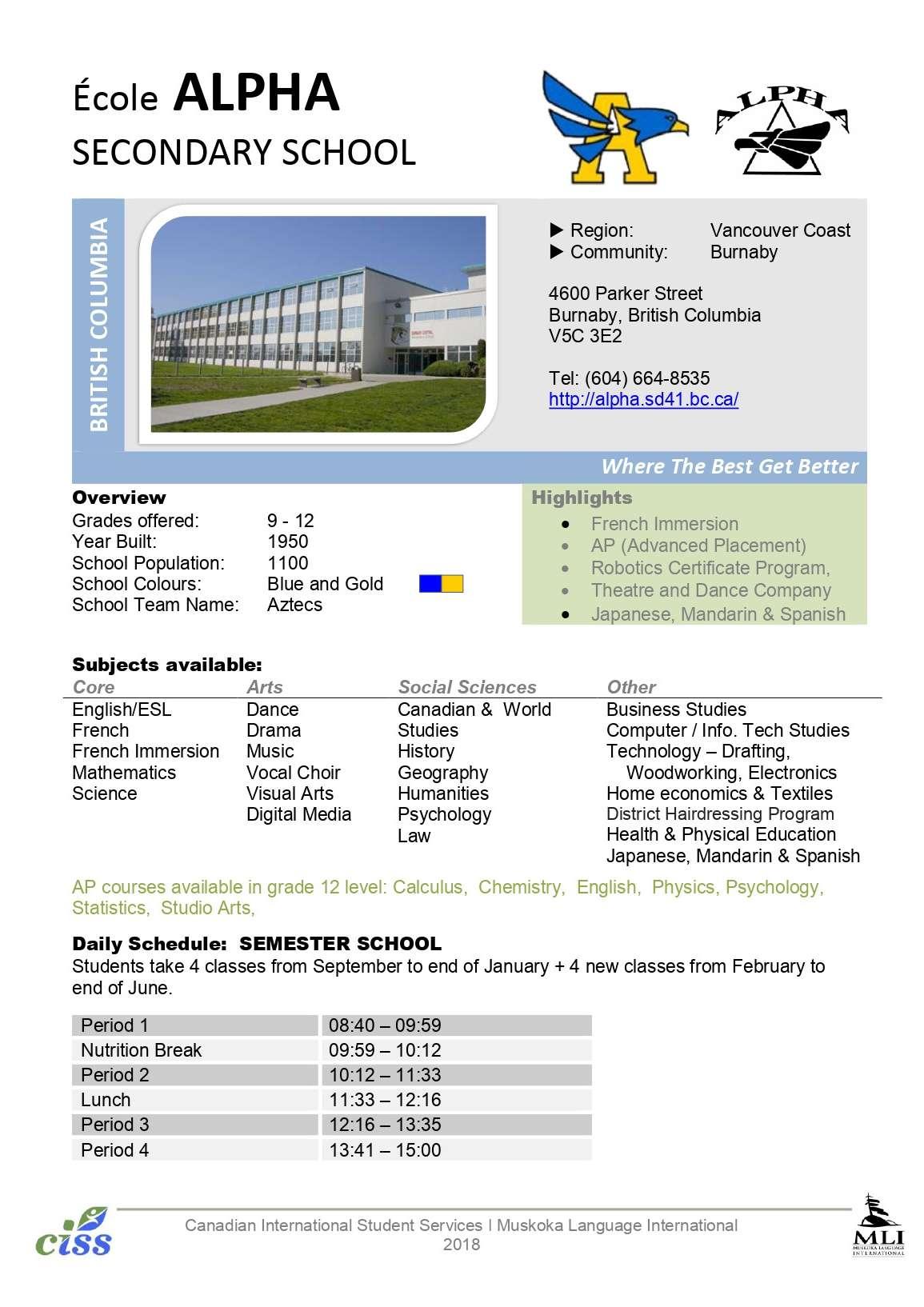 Anno Scolastico all'Estero 2023/24 CANADA PROGRAMMA SCHOOL CHOICE SCHOOLS
