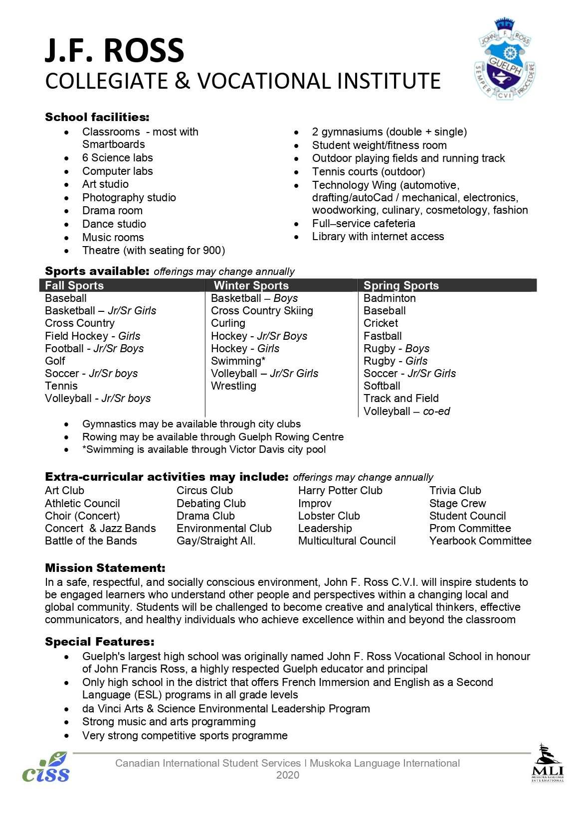 INDICE 1) Centennial Collegiate 6) J.F. Ross Collegiate 12) Guelph Collegiate 19) Orangevillage District Secondary School 24) Westside Secondary School