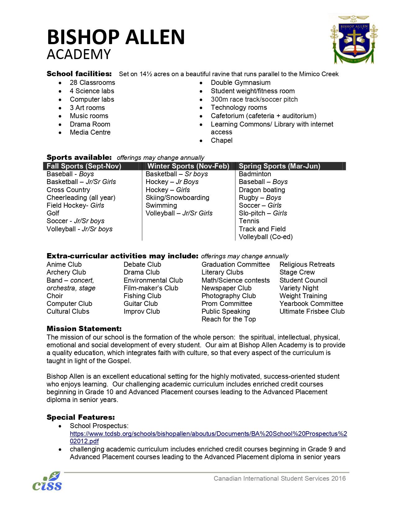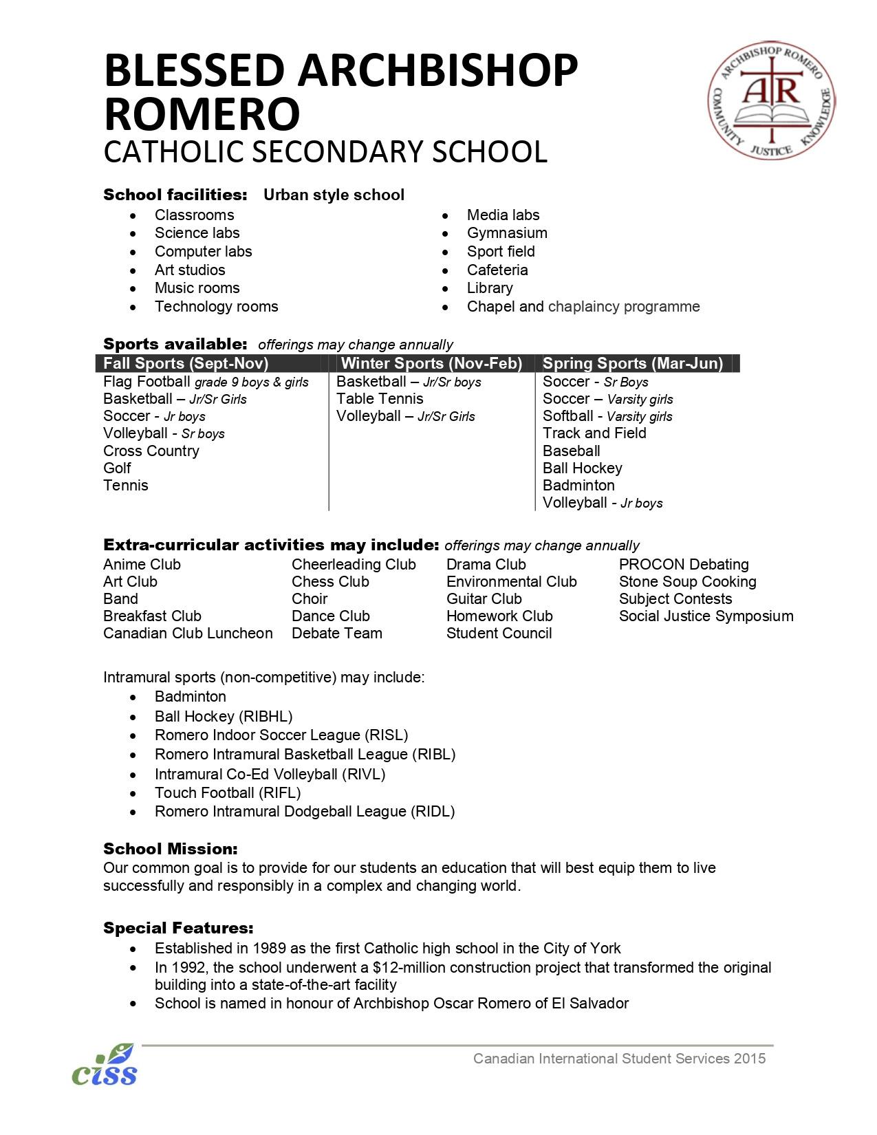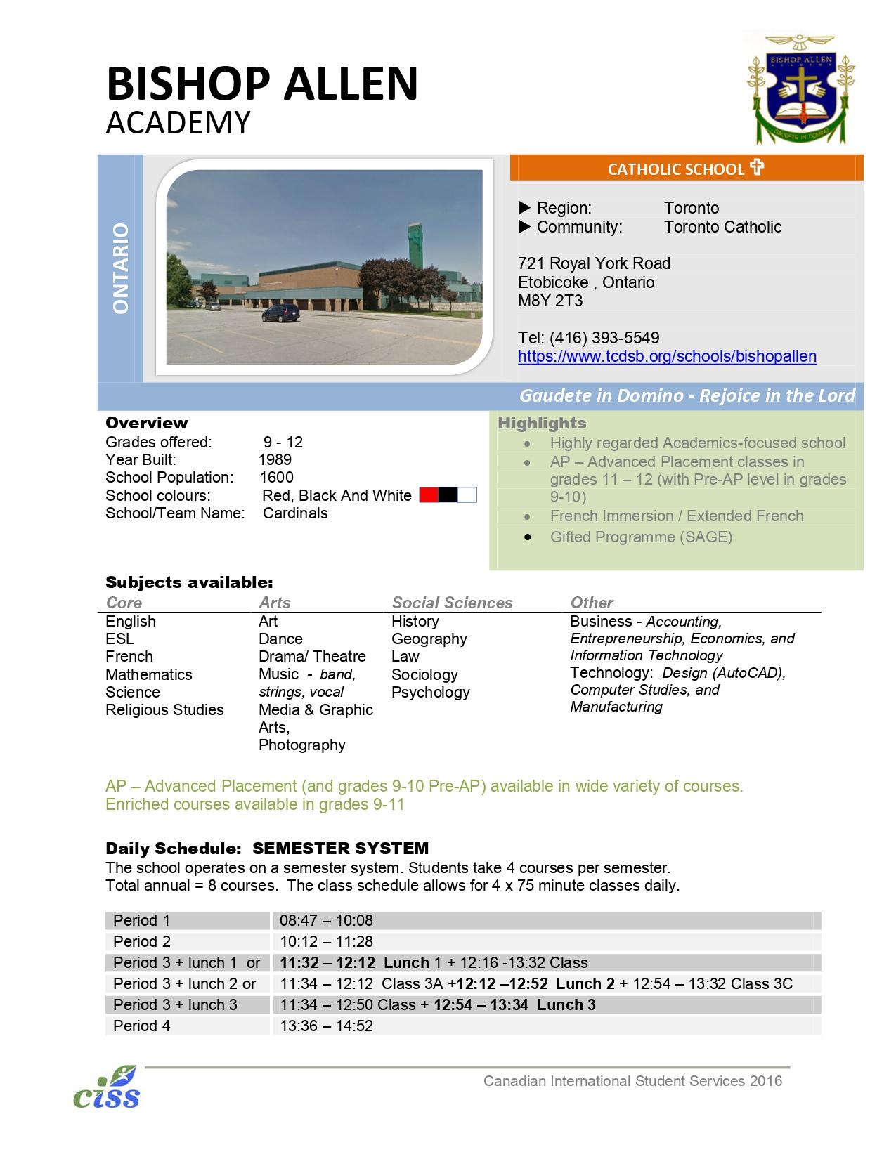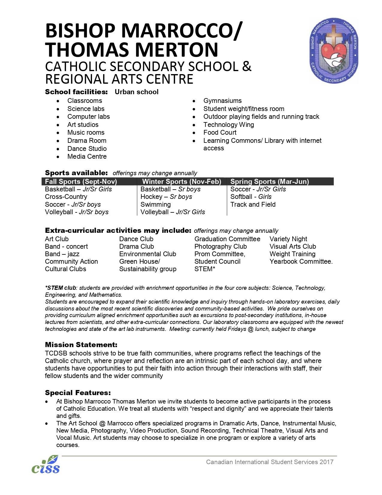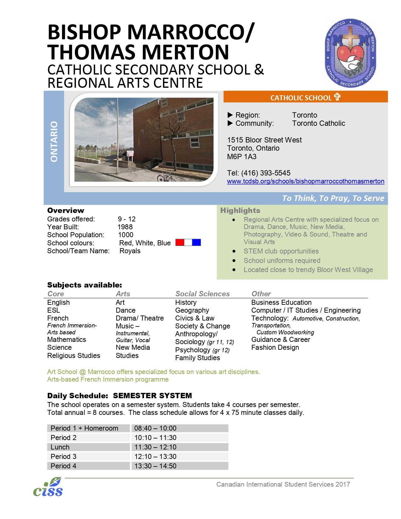 INDICE 1) Bishop Allen Academy 7) Bishop Marrocco Thomas Merton CSS 12) Blessed Archbishop Romero CSS 17) Brebeuf Academic (for Boys) Bishop Allen Academy - Secondary School 1 2 3 4 5 6 7 Bishop Marrocco/Thomas Merton Catholic Secondary School 8 9 10 11 Catholic 12 Blessed Archbishop Romero Secondary School 13 14 15 16