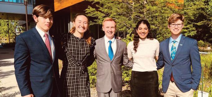 BHC scholars Rowan Stuart, Jessica Wilson, Connor Merk, Kainaat Trehan and Edward McDonald achieved first place in the undergraduate division at Intentional Endowments Network’s Student Corporate Engagement Competition on April 29.