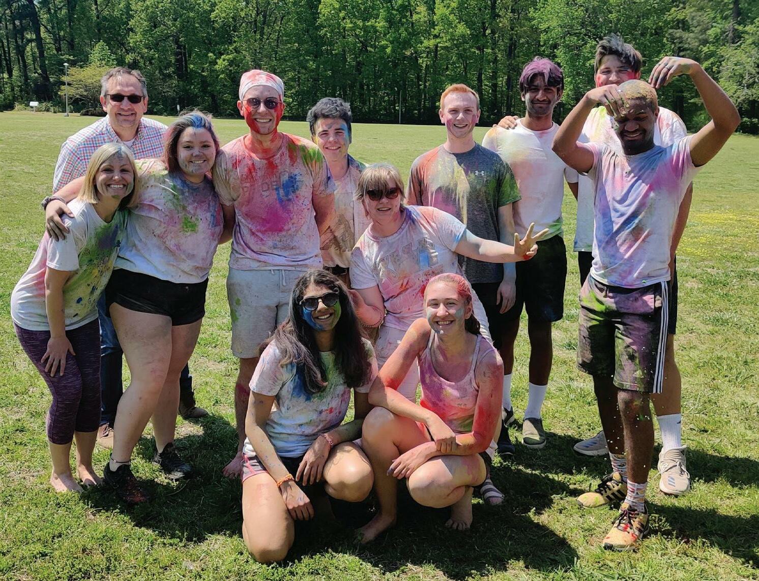 Students celebrated Holi or the Festival of Colors in Rose Lawn. Holi is a Hindu festival that marks the onset of Spring and celebrates the divine love of Hindu dieties Radha-Krishna.