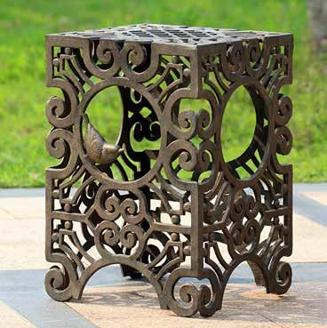 Cast Aluminum, 20"H 15"W 10"D Votive candle not included.