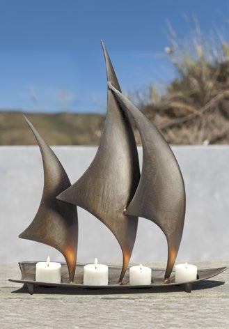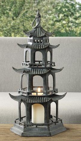 Cast Aluminum, 13"H 31"W 13"D Shown with 3"DIA candle, not included.