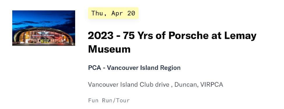 Hope everybody is doing great! Spring is in the air and you just see more and more members taking their cars out for a drive! I attended the last two Cars and Coffees in Parksville, and the amount of Porsches and members there was just awesome! So cool to meet great people and share stories! If you’ve never attended a Cars and Coffee, please do!