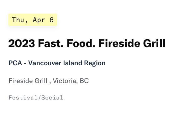 Fast. Food. is a monthly casual get-together for VIRPCA members (plusones also welcome) to appreciate the gastronomic delights of our island home.