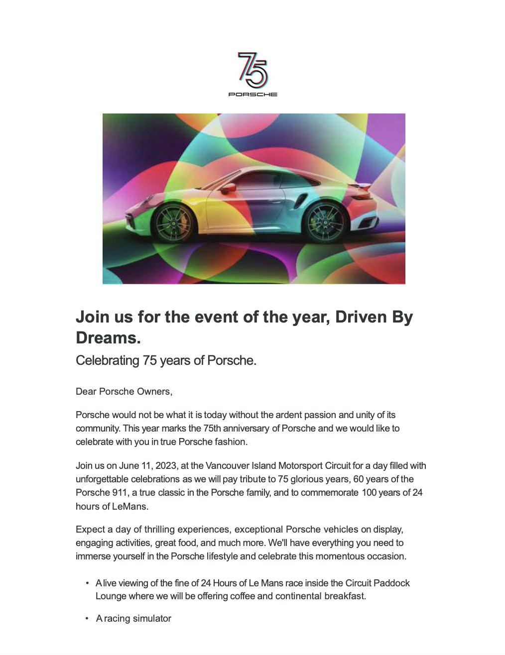 • the club’s Facebook group page: “Vancouver Island Region - Porsche Club of America”