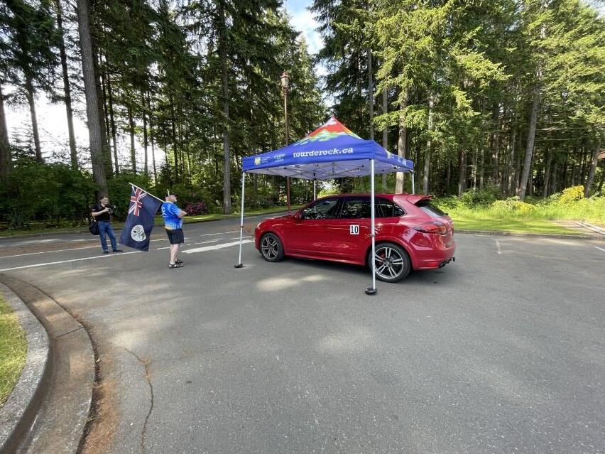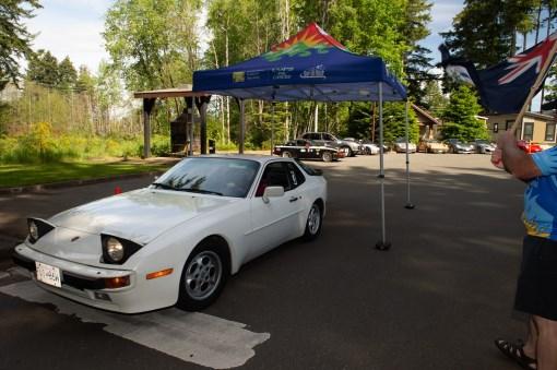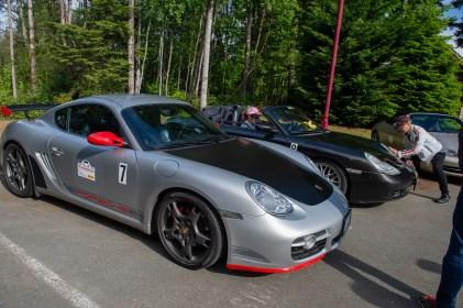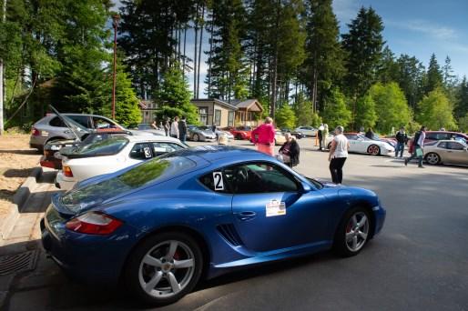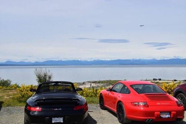 After an early morning light breakfast and drivers meeting, the drive began. Nine Porsches and fourteen participants departed at 7:45 am. The first hour was over paved backroads and along the scenic oceanfront highway to the first stop for fuel and washrooms. It was here that unfortunately one car had to return to Crown Isle, due to a leaking coolant cap.