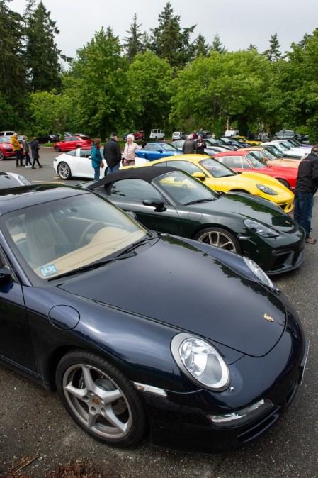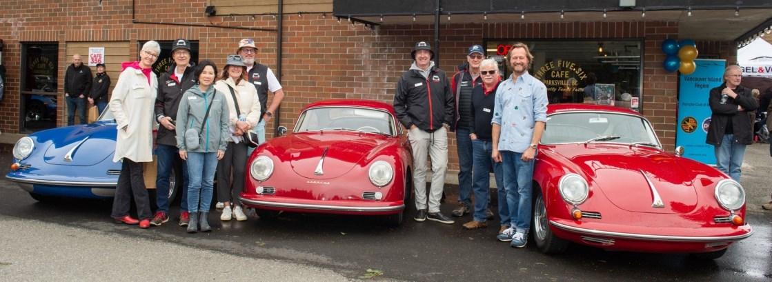 13 Porsches from as far away as Portland, Oregon and Prince George, BC selected the scenic morning coast drive to Quadra Island. The sunny drive followed country roads and the old Island highway 19A north to an essential morning stop at Foggdukkers Coffee.