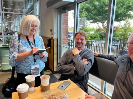 Right: This photo, because I met Deb and Doug waiting for a Hullo Ferry in Vancouver a few months ago. We got talking about where home is, discussed the French Creek Pub and then found out we all knew Paul Rossmo and are all members of VIRPCA. I love seeing my new friends Deb and Doug at events. Here they are rekindling their friendship with Paul. Watch out for me in the ferry line ups people!