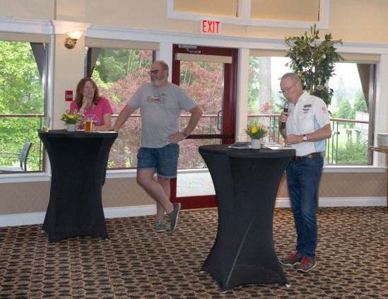After the live auction, Vice President Ron Dempsey called up the WochenendEscape Committee to thank them on behalf of the VIR Executive Committee. He then presented them with old-fashioned glasses etched with the WochenendEscape logo and filled with chocolates. Additional thanks were given to Co-chairs Sonia and Trevor Ross, first from Sheila Jager and Betsy Terpsma on behalf of the WochenendEscape committee, and then from the VIR Executive.