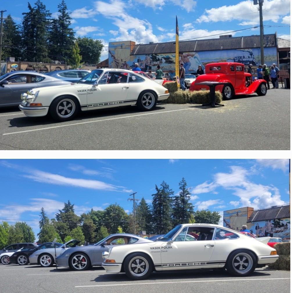 The first President’s Corral and Bull Sessions took place on June 30, 2024, in collaboration with the Chemainus Classic Car Club. The Porsche Corral was set up in the middle of the public market parking lot, with hot rods and classic cars surrounding the Corral. Porsches were parked with precision. Ask Paul how.
