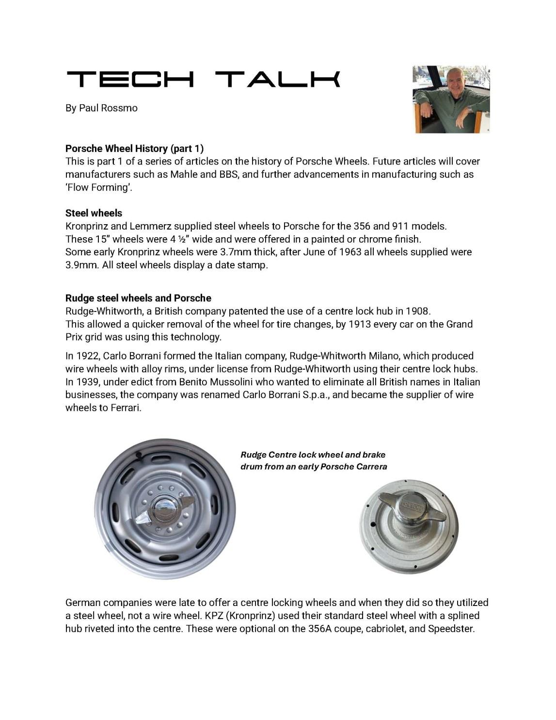 Tech Talk features part one of a Tech article on Porsche wheels by President Paul Rossmo, who is also the Tech/Classics Chair. The Membership Report, In the Zone– Zone 6 and Regional Reports highlight the activity behind the scenes and point to our growth as a region of PCA. Chronicles contains part two of Uli Jaeckel and Mantoine Olivier’s travel trip of 2023.