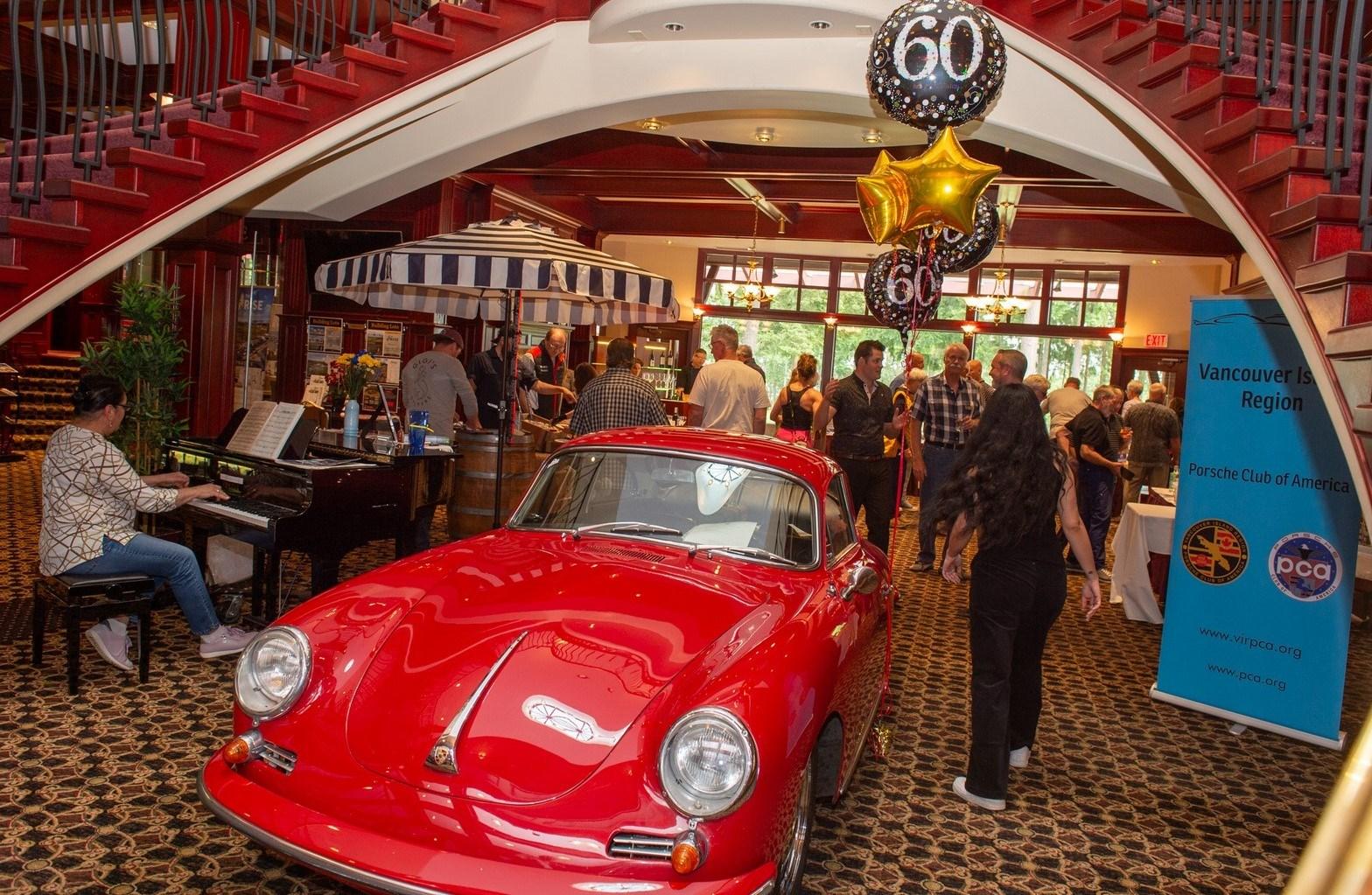 On Thursday, May 23, 65 Porsches from around the Pacific Northwest rolled into Crown Isle Resort, transporting 116 PCA members seeking a weekend escape, North Island style! Two red Porsches, complete with birthday balloons, greeted guests as they arrived, with VIR member Jim Webber’s 1965 911 parked at the hotel doors and Ron Dempsey’s 1964-ish 356 in the lobby.