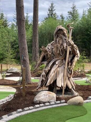 From the southern tip of the Island the drive continued to the Quadra Island Golf Course. The golf course was a welcome pit stop and chance to visit the Enchanted Woods and the whimsical driftwood creations of local artist Alex Witcombe.
