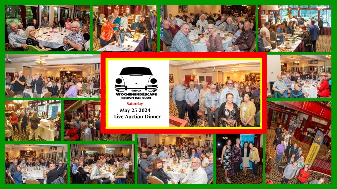 Saturday night was our main fundraiser for Cops for Cancer. There were several bucket draw items to look over before dinner – Porsche rugs, Weissach garments, themed comestible baskets, car wash kits, gift certificates for a variety of auto-related services, and other items donated by sponsors and VIR members. After a hearty dinner of roast beef and salmon, among other things, it was time for the live auction, and bidding on the many desirable items donated by supporters of VIR and Cops for Cancer Tour de Rock. As always, VIR member Norm Smith was our very capable and entertaining auctioneer.