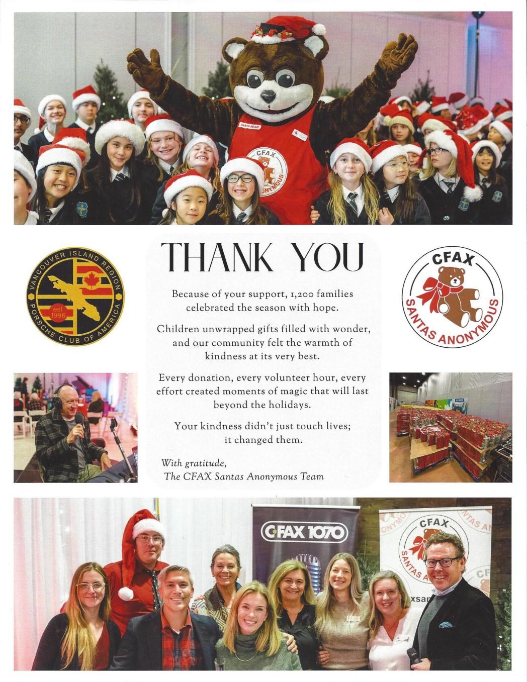 Letters… CFAX Santas Anonymous sent us a thank you note for the $12,000 raised.