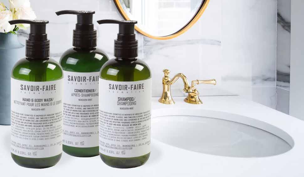 • Consider the cost-effective pump dispensers in your public spaces for a seamless brand journey through your hotel