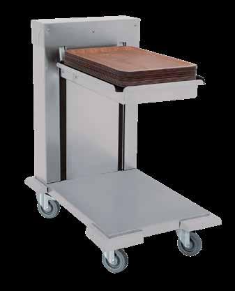 16 • AISI 304 stainless steel sheet construction, brushed finish • Pushing handle • Suitable for GN 1/1 – EN trays (platform available in other formats upon request) • 1 open elevating column • Lifting system adjustable according to the weight • Rubber corner bumpers • Castors ø 12.5 cm, 2 with brake 130 Kg Models Modelle Version for Ausführung Max dim. Max. Abm. Cm NKP370-530 1/1 GN 81x52x90 h 9705EN EN IFI0055 Dishwasher 55x65x90 h Tray dispensers Art. IFI0055Art. NKP370-530