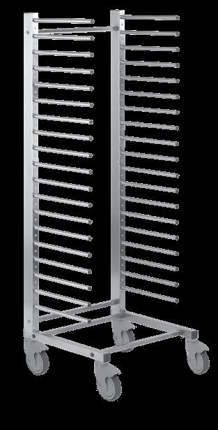 1482U-PI 36 U 138x60x183 h • AISI 304 stainless steel 2x2 cm square tube construction with bolted cross-members • Chrome-plated steel wire supports suitable for trays having a maximum dimension of 53x39 cm even in different sizes and shapes • Stainless steel sheet “L”-shaped runners • AISI 304 stainless steel panels • Grey rubber ring buffers • Swivel castors, ø 12.5 cm Models Modelle Tray capacity Fachkapazität Runners Läuferinnen Shelf spacing Regalabstand Cm Max dim. Max. Abm. Cm 1471U 10 GN 1/1 45x60x150 h 1474U 12 GN 1/1 45x60x172 h 1476U 20 GN 1/1 80x60x150
