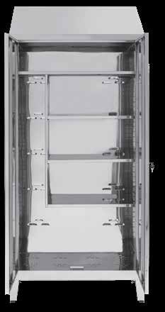 48 Changing room lockers and broom lockers • AISI 430 stainless steel sheet changing room locker • Sloping roof • Clothes hook • Internal partition and shelves • Lockable doors • Shoe and hat racks • Adjustable feet Models Modelle Description Beschreibung Max dim. Max. Abm. Cm 9440 Single locker 50x40x215 h 9442 2-Door locker 95x40x215 h 9444 4-Door locker 9460 1-Door locker 50x40x215 h 9462 2-Door locker 95x40x215 h Art. 9440 Art. 9444 Art. 9462