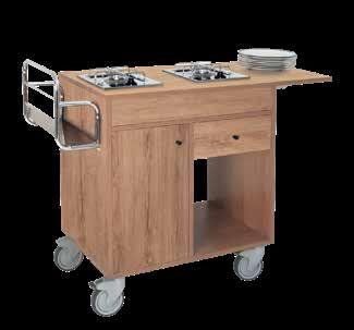 7 Flambé trolleys Models Modelle Version Ausführung Gas burners Gasbrenner Max dim.cm (open) Max dim.cm (offen) Max dim. cm (closed) Max. Abm. cm (geschlossen) 1160S Oak Single 123x50x87 h 95x50x87 h1160D Oak Double IFK0001 Wengé Twin Oak Wengé Art. 1160D Art. 1160S Art. IFK0001