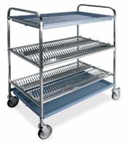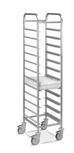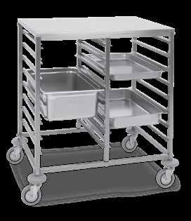 29 • AISI 304 stainless steel 2x2 cm square tube construction with bolted cross-members • Stainless steel sheet “L”-shaped runners suitable for GN or EN trays (depending on the model) • AISI 304 stainless steel sheet panels • Grey rubber ring buffers • Swivel castors, ø 12.5 cm Models Modelle Tray capacity Fachkapazität Runners Läuferinnen Shelf spacing Regalabstand Cm Max dim. Max. Abm. Cm 1470GN-PI 10 GN 1/1 45x60x150 h IFI0029W 12 GN 1/1 45x60x172 h 1475GN-PI 20 GN 1/1 80x60x150 h IFI0005/W 24 GN 1/1 80x60x172 h 1480GN-PI 30 GN 1/1 116x60x150 h 1482GN-PI 36 GN 1/1 116x60x172 h 1470EN-PI 10 EN 49x60x150 h 1472EN-PI 12 EN 49x60x172 h 1475EN-PI 20 EN 89x60x150 h 1477EN-PI 24 EN 89x60x172 h 1480EN-PI 30 EN 129x60x150 h 1482EN-PI 36 EN 129x60x172 h Models Modelle Tray capacity Fachkapazität Runners Läuferinnen Shelf spacing Regalabstand Cm Max dim. Max. Abm. Cm 1471GN 10 GN 1/1 45x60x150 h 1474GN 12 GN 1/1 45x60x172 h 1476GN 20 GN 1/1 80x60x150 h 1478GN 24 GN 1/1 80x60x172 h 1481GN 30 GN 1/1 116x60x150 h 1483GN 36 GN 1/1 116x60x172 h 1471EN 10 EN 49x60x150 h 1474EN 12 EN 49x60x172 h 1476EN 20 EN 89x60x150 h 1478EN 24 EN 89x60x172 h 1481EN 30 EN 129x60x150 h 1483EN 36 EN 129x60x172 h Art. 1470GN-PI • GN - EN TRAY TROLLEYS WITH PANELS ON 2 SIDES • GN - EN TRAY TROLLEYS WITH PANELS ON 3 SIDES - TOP SHELF WITH RAILS 11 11 Art. 1476GN