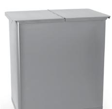 50 Fast-food rubbish bins • AISI 430 stainless steel sheet structure (art. 2591) • Plastic-coated galvanized sheet structure (Art. 2592 - 2593 - 2596 - 2598) • Raised edge top for trays • Swinging door for trays cleaning • Sack-holder lower lockable door • Adjustable nylon feet • Stainless steel structure, non-marking brushed finish • Polypropylene and stainless steel lids • ABS base • Product compliant with HACCP system Models Modelle Version Capacity Kapazität Lt Max dim. Max. Abm. Cm Weight Gewicht Kg GGZ0011 Stainless steel 80 60x60x120 h 42 2561 Stainless steel 2x12 60x39x43 h 6 2432 Stainless steel 70 40x30x90 h 9 Art. GGZ0011Art. 2561 Internal buckets detail Art. 2432