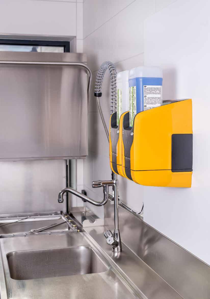 Med det gröna effektivitetskonceptet har HAGLEITNER säkerställt att alla kemiska doseringsprodukter inom köks HYGIENE och tvättHYGIENE produceras utan NTA, EDTA