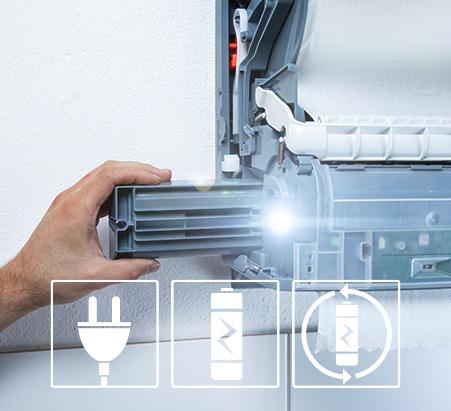 EnergyBOX S/M/L Att välja energyBOX innebär att man väljer en hållbar och innovativ energilösning. Hagleitner samlar in tomma energiboxar och bearbetar dem på ett miljövänligt sätt. PowerPACK ADAPTER hybrid PowerPACK ADAPTER hybrid är en strömförsörjningsenhet som ansluter XIBU-dispensrar direkt till elnätet. Adaptern kan antingen vara för vägguttag eller infälld dosa.