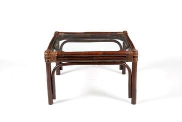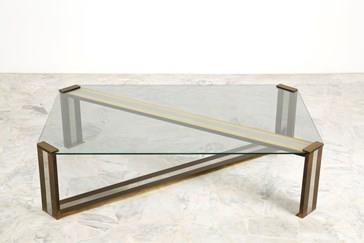 Tavolino da caffè in ottone, acciaio e vetro. Anni '70. Difetti.