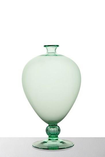 Vaso in vetro di Murano verde e blu. Firmato e datato '94 sul fondo. Produzione VENINI. Con etichetta all'interno.