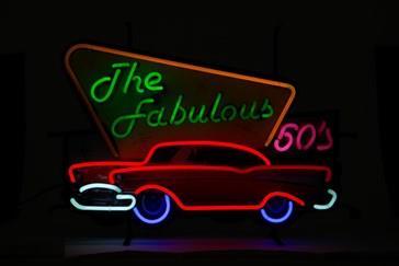 Insegna al neon The Fabulous 50'S su supporto metallico laccato nero e piedini in gomma.