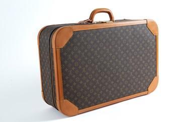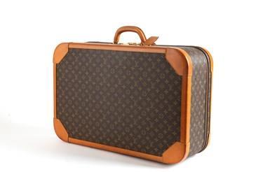 LOUIS VUITTON. Valigia Sirius con manico, cinghie e bordi in pelle marrone chiaro.
