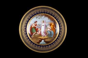 Piatto in porcellana Satsuma raffigurante "AMATERASU SUSANOO". Giappone. Metà XIX secolo.