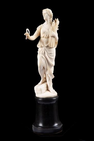 Okimono in avorio raffigurante "SAMURAI CON BAMBINO". Firmato alla base. Giappone. Periodo Meiji. Con certificato CITES.